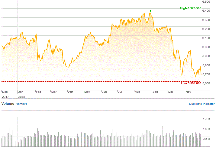 S&P/ASX 200 – 12 months to 30 November 2018